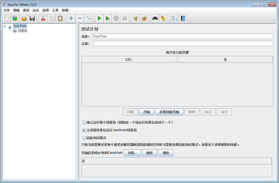 (1)测试计划(TestPlan),一个脚本中只能有一个测试计划,是区域①中目录树的根节点。