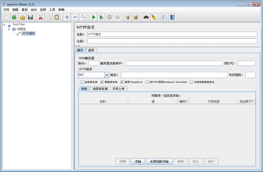JMeter是 Apache 组织基于 Java 开发的压力测试工具,用于对软件做压力测试。 其最初被设计用于Web应用测试,但后来扩展到了其他测试领域,可用于测试静态和动态资源,如静态文件、Java小服务程序、CGI脚本、Java对象、数据库和FTP服务器等等。JMeter可对服务器、网络或对象模拟巨大的负载,在不同压力类别下测试它们的强度和分析整体性能,其运行界面如下所示。