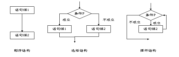 任何复杂的算法,都可以由顺序结构、选择(分支)结构和循环结构这三种基本结构组成,因此,构造一个算法的时候,也仅以这三种基本结构作为“建筑单元”,遵守三种基本结构的规范,基本结构之间可以并列、可以相互包含,但不允许交叉,不允许从一个结构直接转到另一个结构的内部去,三种常见的结构如下图所示。