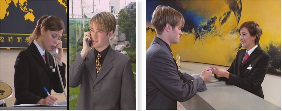 4) Watch the video one last time, with a male student and two female students doing all the voices for the whole conversation.