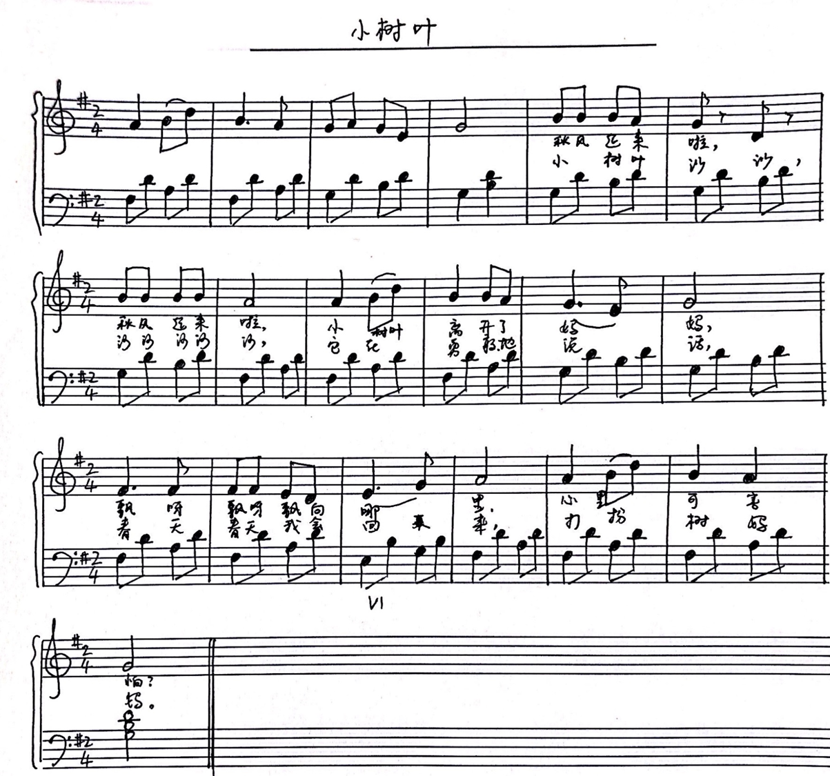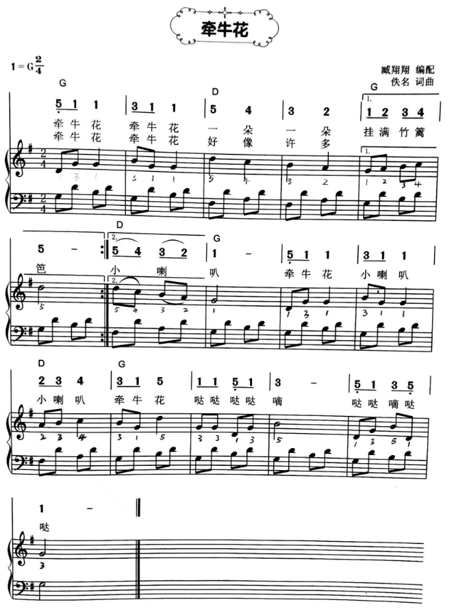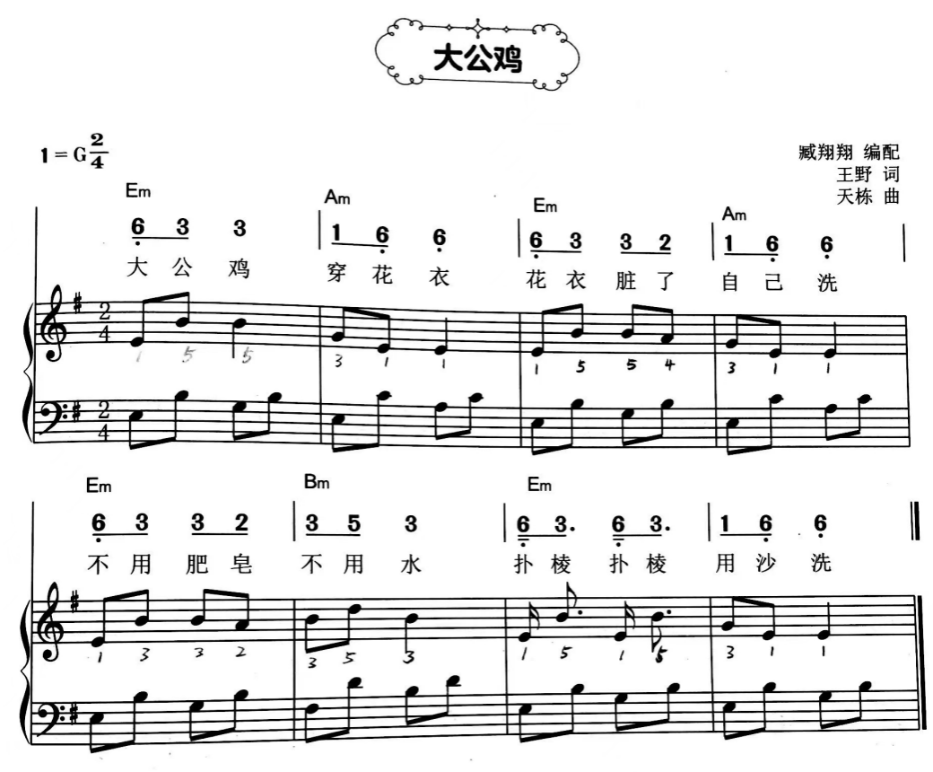 任务二 G大调《小树叶》、《牵牛花》、e小调《大公鸡》弹奏练习