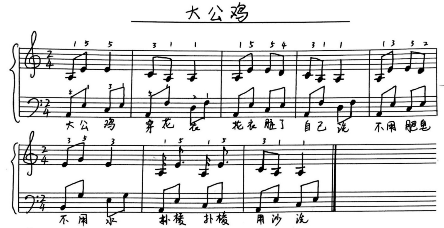 (1)g小调《大公鸡》弹唱练习:
