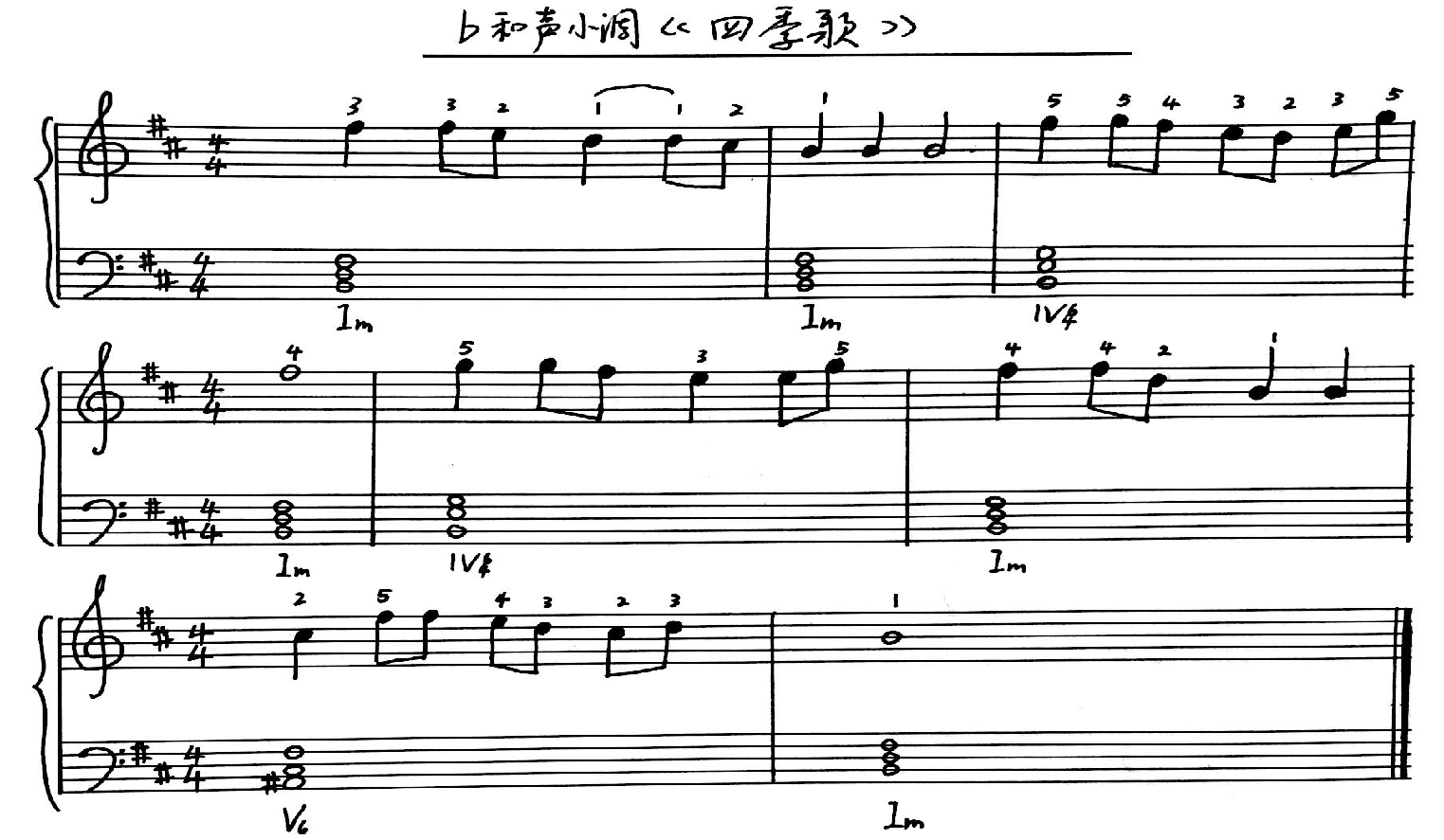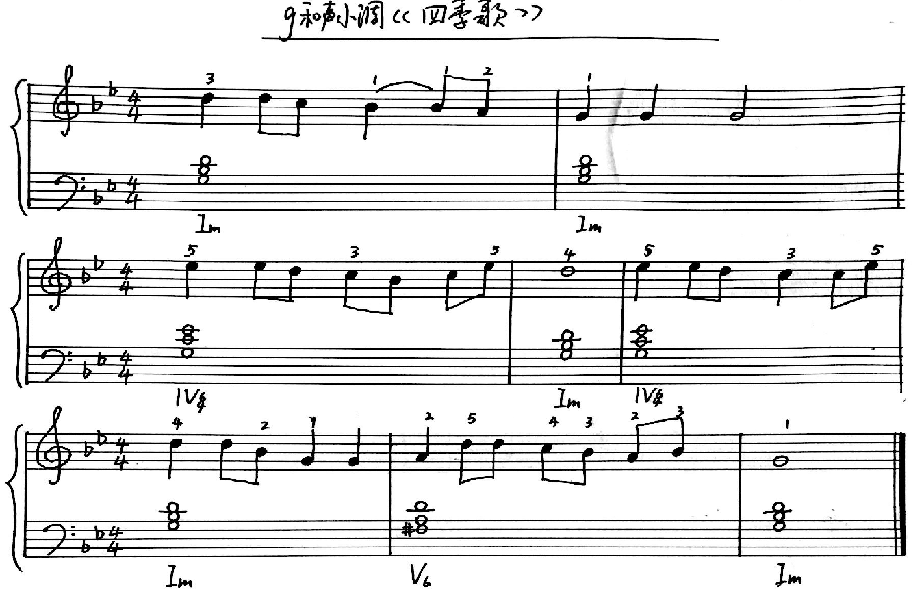 (2)b和声小调《四季歌》弹唱练习: