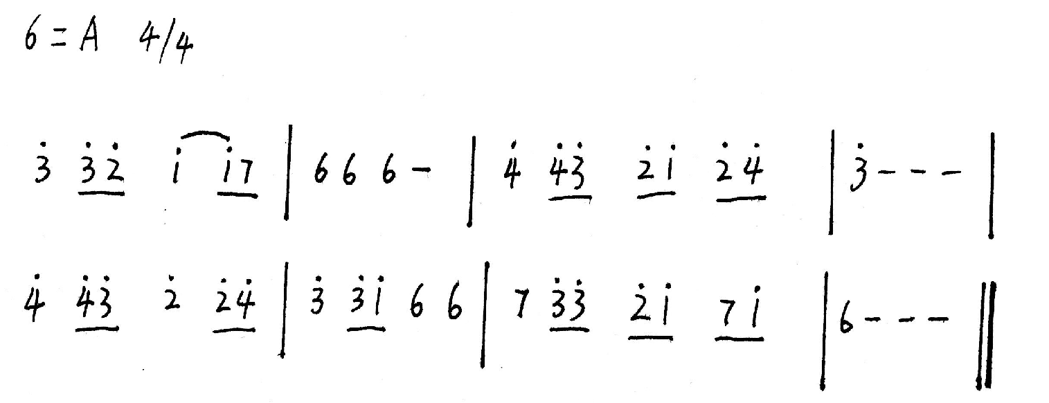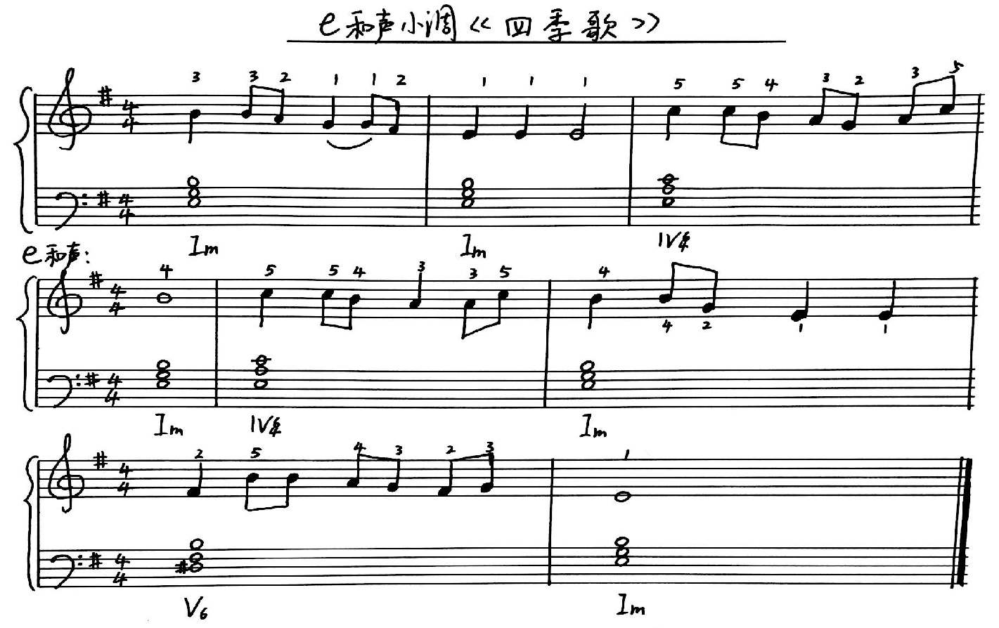 (2) e和声小调《四季歌》弹唱练习: