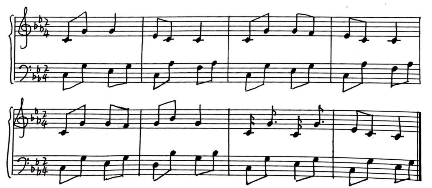 (1)c小调《大公鸡》弹唱练习: