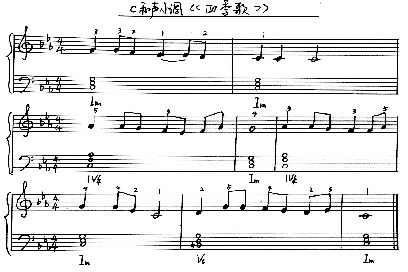 (2)c和声小调《四季歌》弹唱练习: