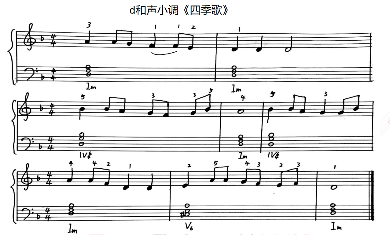 (2)d和声小调《四季歌》弹唱练习: