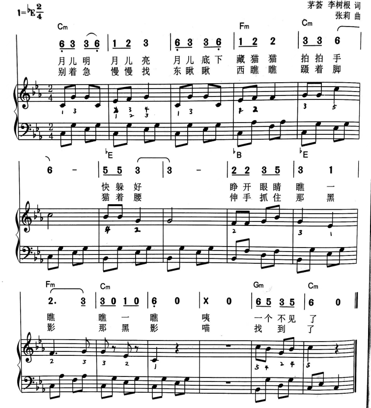 (1)《藏猫猫》右手旋律弹唱