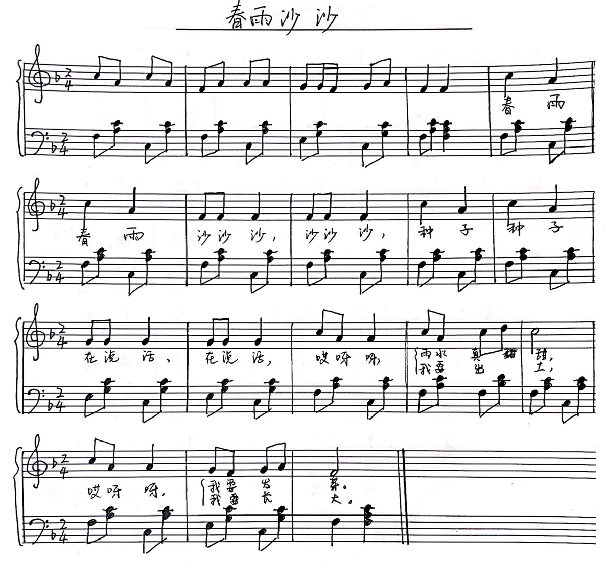 二、《春雨沙沙》左手伴奏和弦讲解: