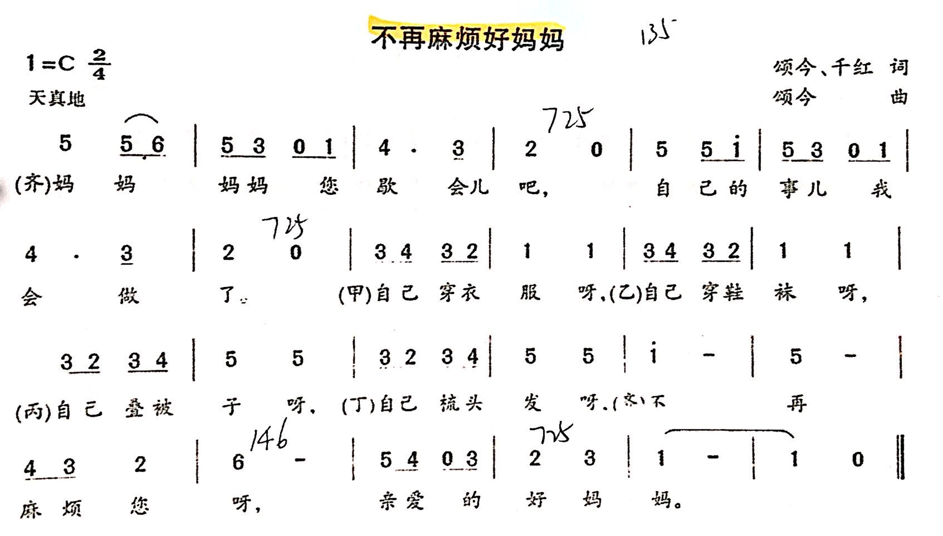 一、《不再麻烦好妈妈》右手旋律弹唱: