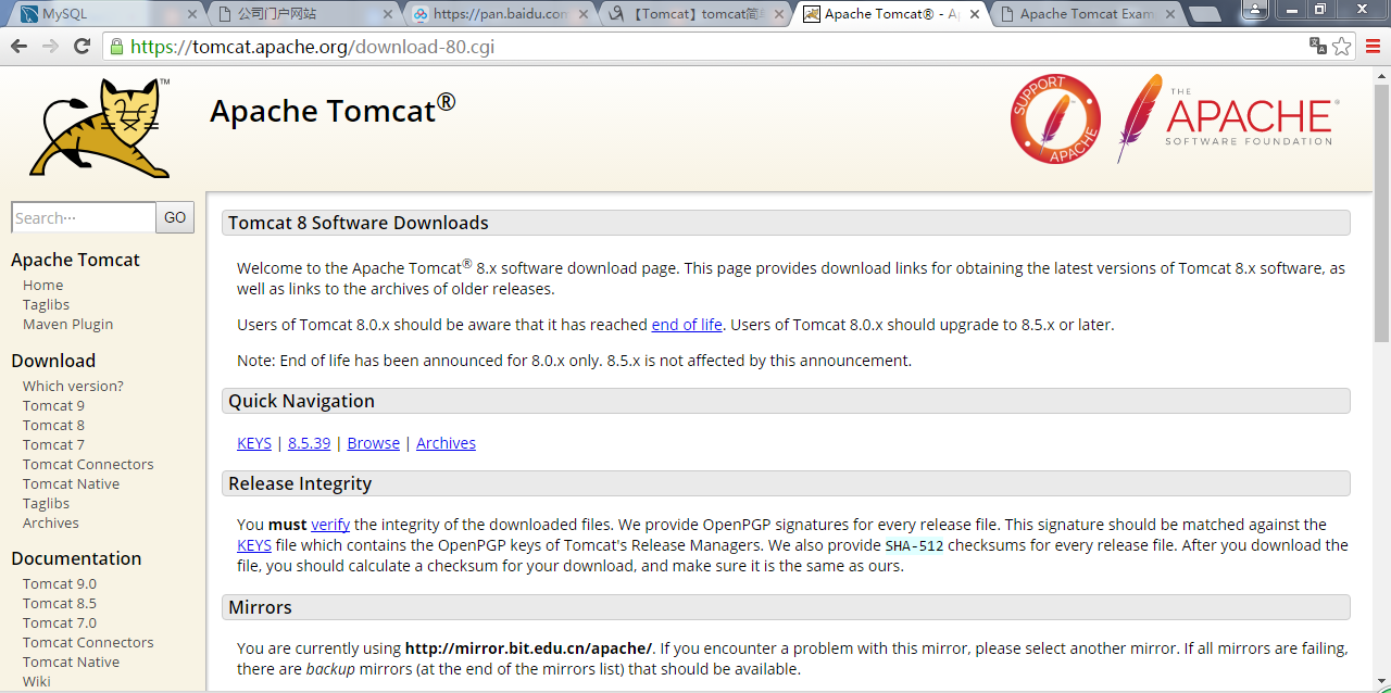 Tomcat官网首页(见下图)地址:https://tomcat.apache.org
