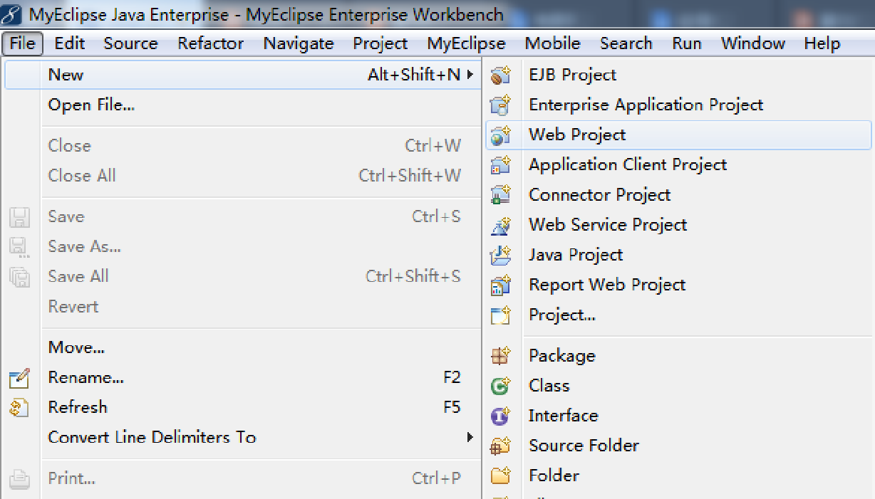 (1)新建Web Project:选择“File>New>Web Project”