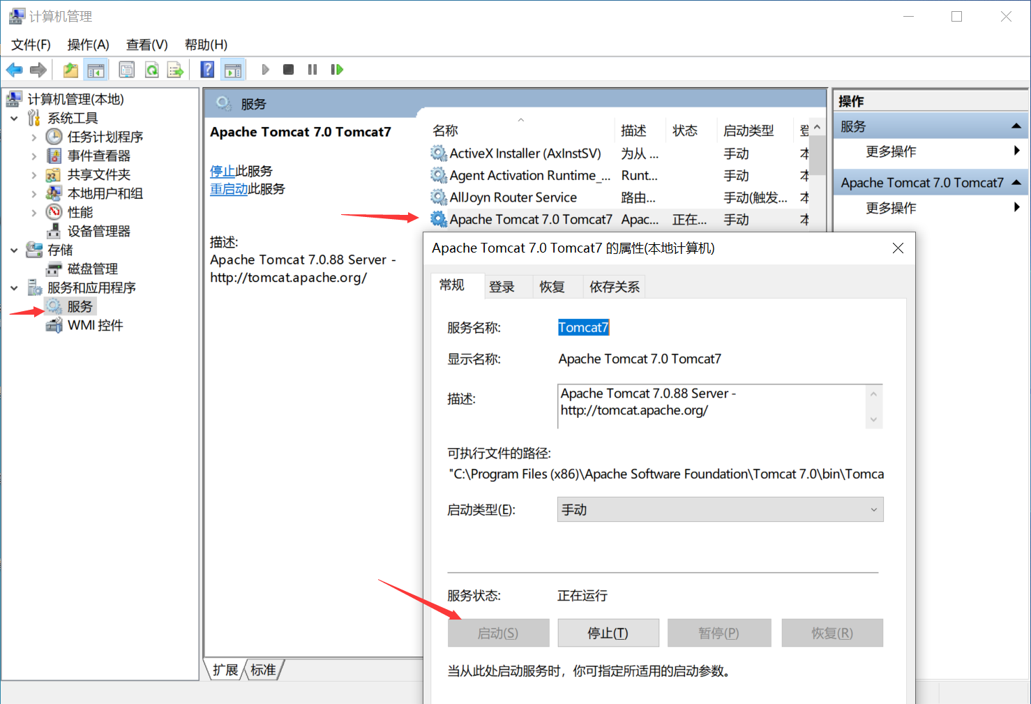 右击--“开始”-“计算机管理”-启动服务