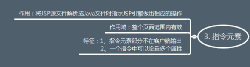 该元素的作用是在将JSP源文件解析成Java文件时指示JSP引擎做出相应的操作,从而达到预期的目的。JSP指令在整个页面范围内有效,且不在客户端产生任何输出。基本格式为:<%@指令 属性1="" ... 属性2="" %>常见的指令有: page、include、taglib,要注意“%”和“@”符号之间不能有空格。