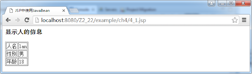 <td><jsp:getProperty name="person" property="age"/></td></tr>