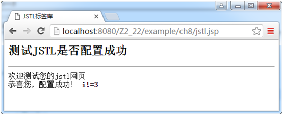 <c:out value="欢迎测试您的jstl网页" /><br>   恭喜您,配置成功!<br>