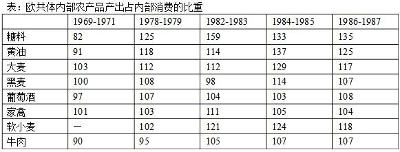 3、统一对外的农产品进口关税壁垒保护了内部农产品市场,使得内部的农产品贸易迅速发展,贸易大幅增长。自二战到20世纪60年代初,西欧一直是美国、加拿大和澳大利亚等的农产品出口市场。1958年,欧共体中的一些国家共进口谷物1180万吨,其中只有8%是从成员国购买的。从1961年到1974年,内部农产品贸易额从34亿美元剧增到204亿美元,增长了近7倍。CAP为欧洲经济一体化建设奠定了重要基础。