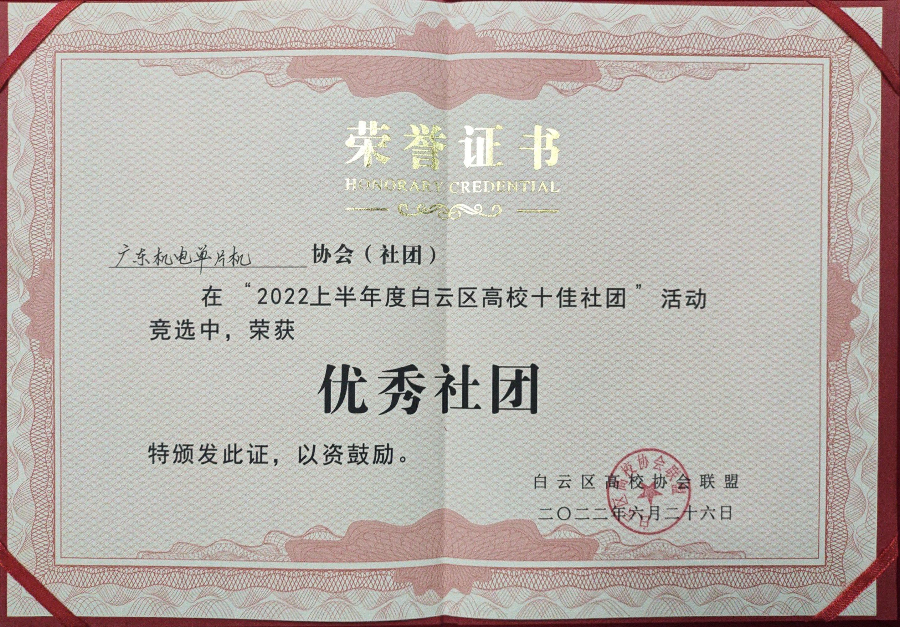 2022年06月 2022上半年度白云区高校十佳社团 优秀社团 单片机协会