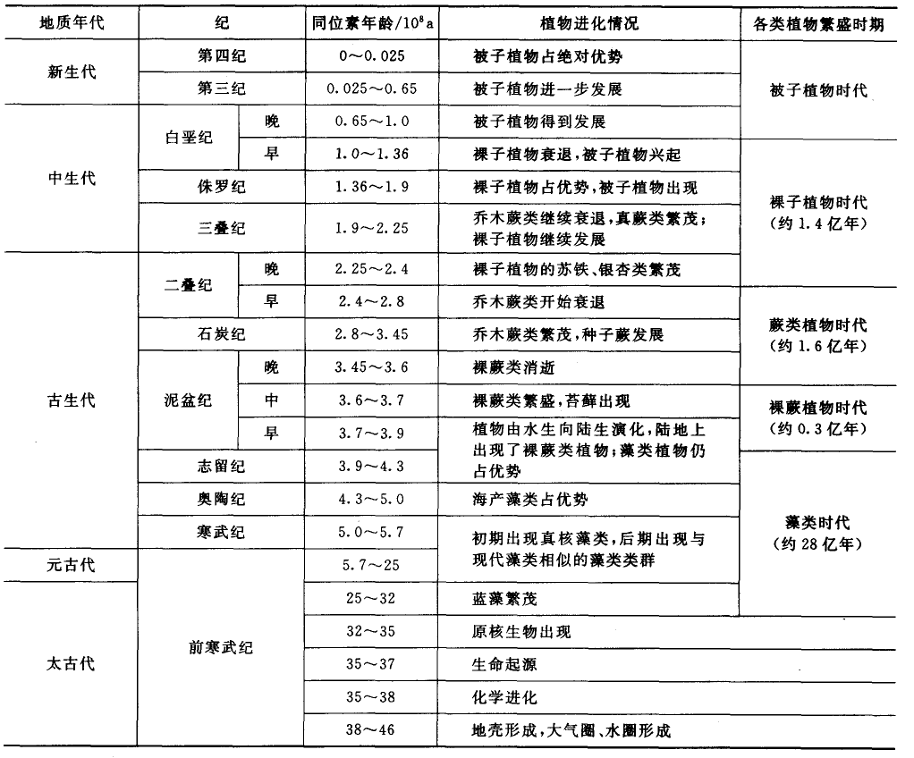 表 地质年代与植物发展的主要阶段