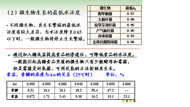 (2)微生物生长的最低水活度