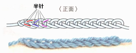 半针--锁针有正反面之分像麻花辫的面为正面左右两根线叫做半针。