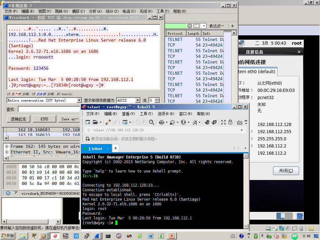 10.1 (1)※Wireshark抓取Telnet明文包(CentOS6.5)