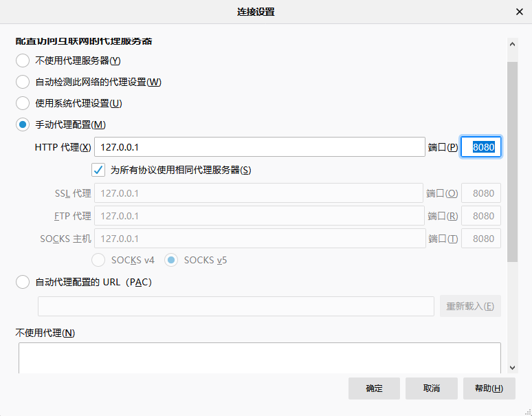 为所有协议使用相同代理服务器(Use this proxy server for all protocols)