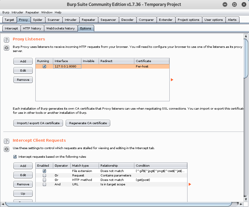 Burp Suite Community Edition v1.7.36(Kali2019.1a)