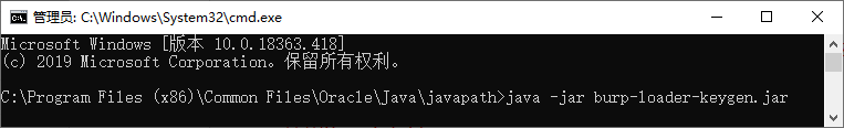 将Burp_Suite_Pro_v1.7.37_Loader_Keygen文件夹的“burp-loader-keygen.jar ”和“burpsuite_pro_v1.7.37.jar”文件复制到“C:\Program Files (x86)\Common Files\Oracle\Java\javapath”文件夹,在地址栏输入“CMD”,进入Windows命令提示符C:\Program Files (x86)\Common Files\Oracle\Java\javapath>