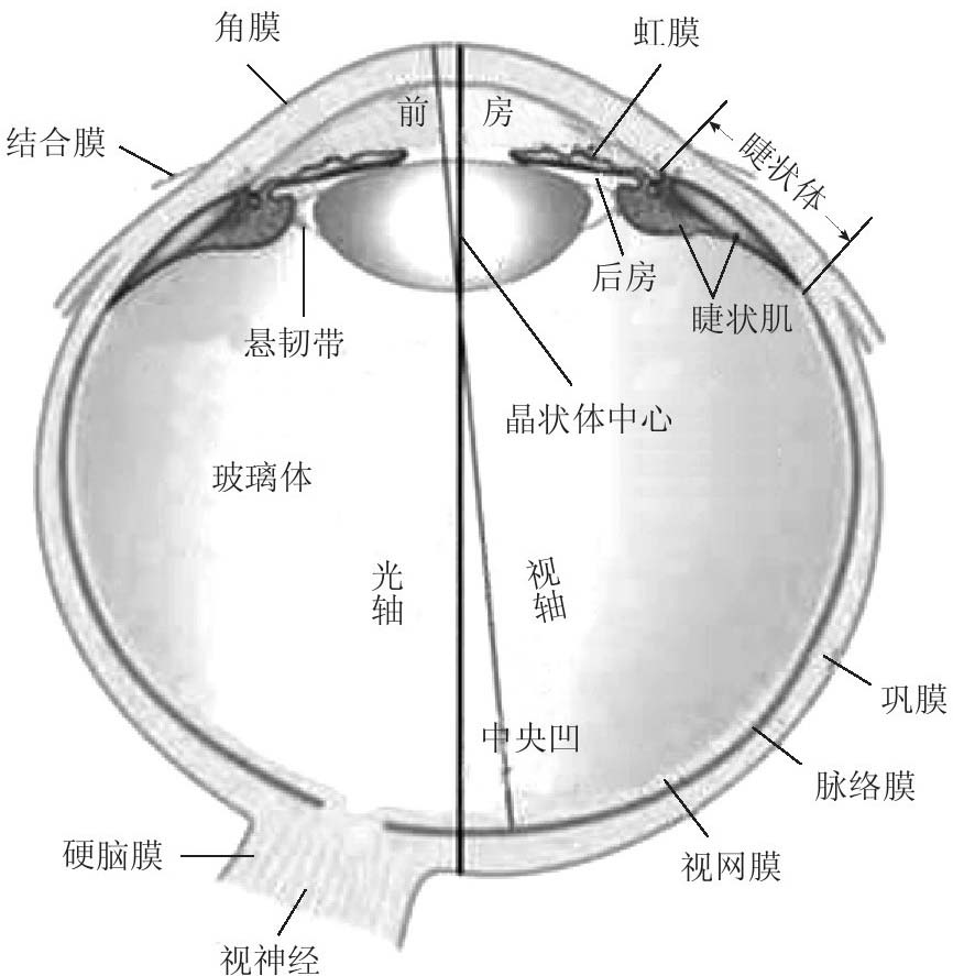 眼球是眼结构和功能的主要部分,由眼球壁及其内容物构成,见图2-56。