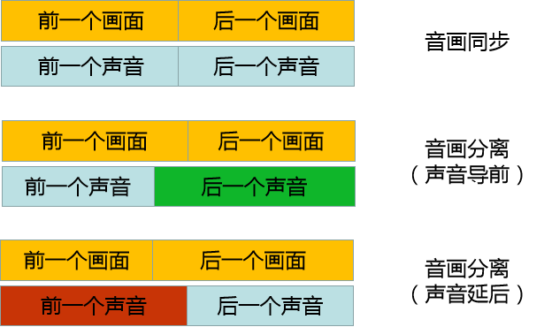 在两个镜头的衔接处音画分离,后一个镜头的声音先于画面出现。