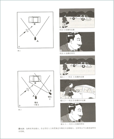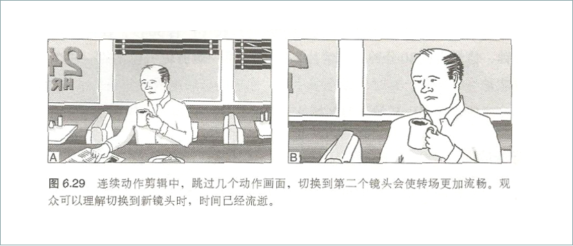 连续动作剪辑中,如果人物从画面左侧走出,同一人物进入下一个镜头时应在右侧。(维持方向的一致性)