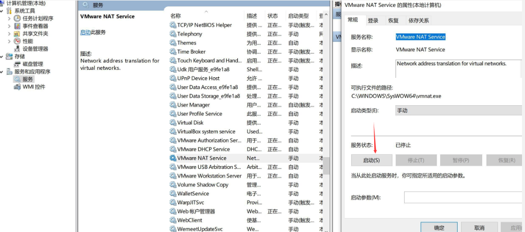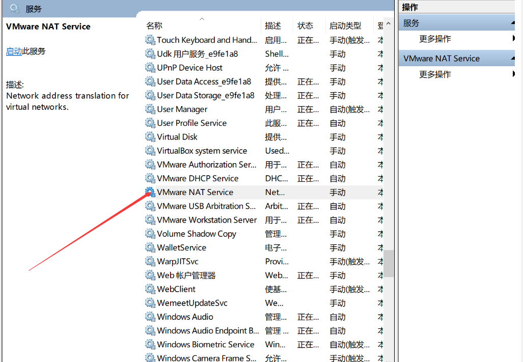 如果大家使用了锐捷客户端来连接校园网,那么锐捷客户端会自动把服务里面的VMware net service关闭,所以连不上网(没有网络图标),因此在用Ubuntu的时候不要用锐捷客户端来连网;接下来就是如何打开VMware net service。