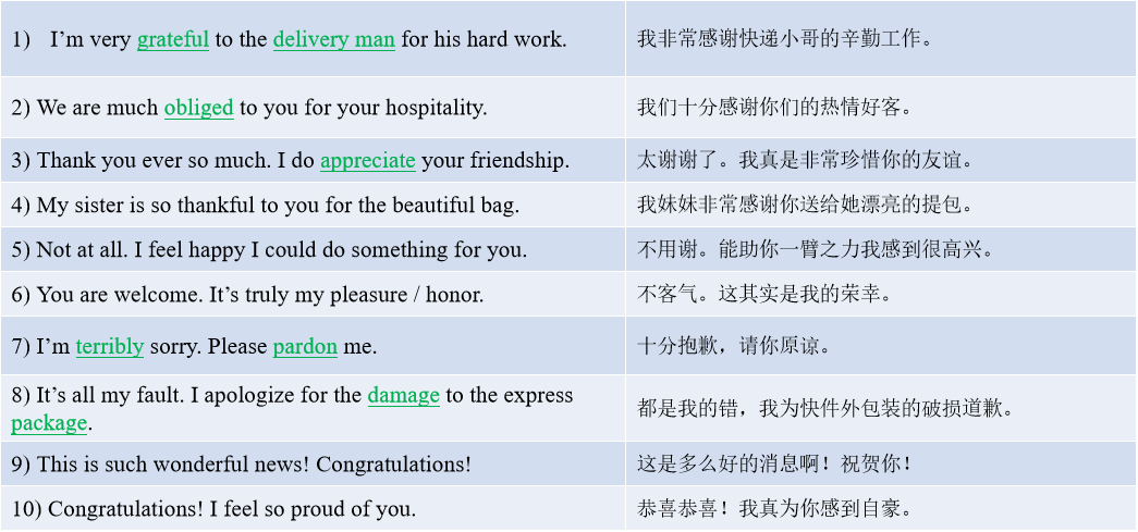 3) 表达他人的感谢