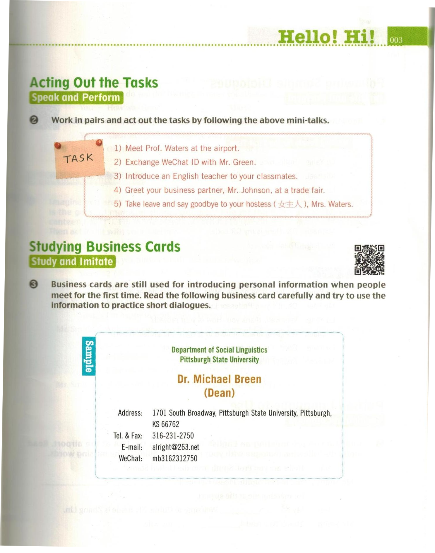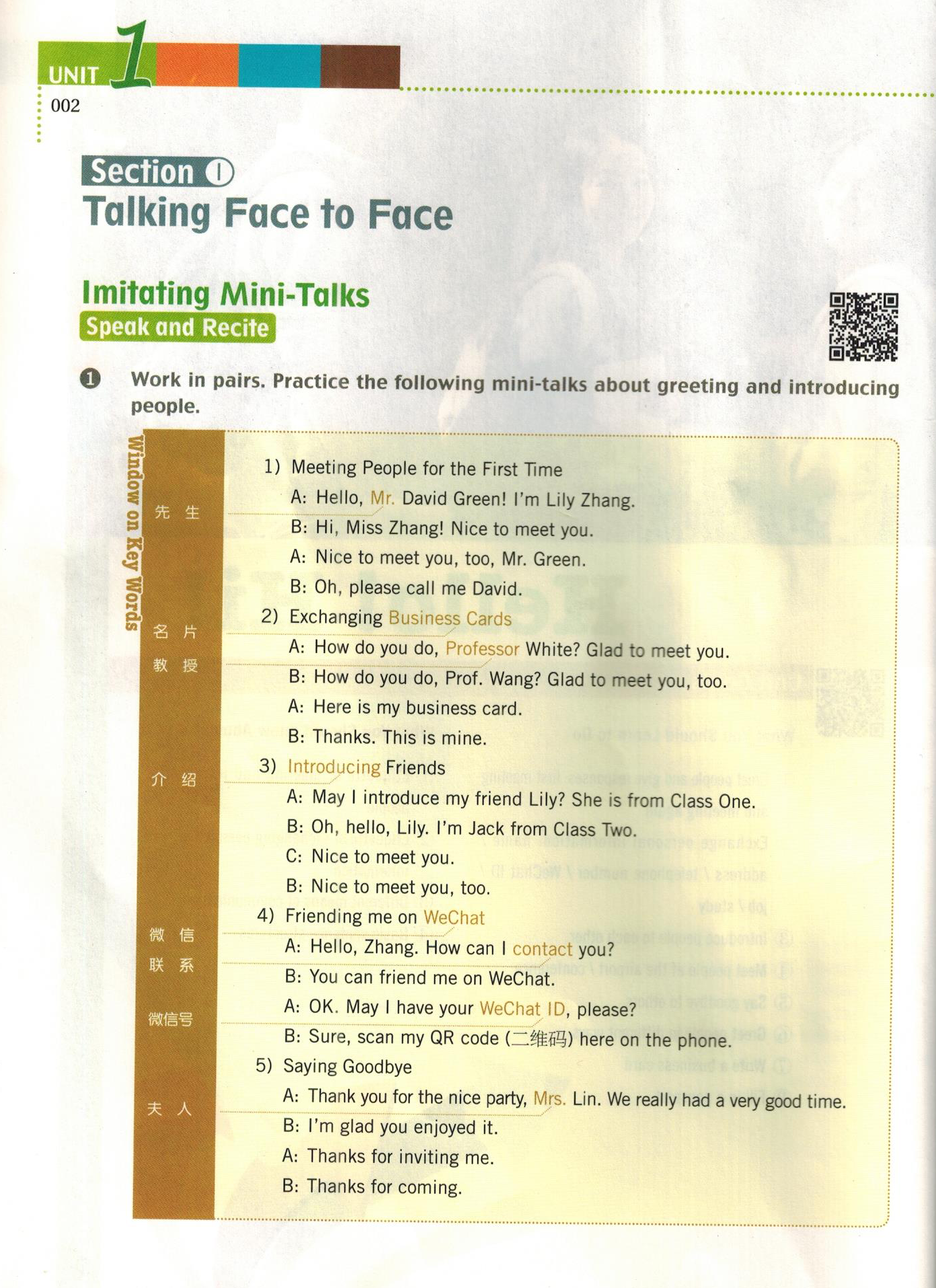 Work in pairs. Practice the following mini-talks about greeting and introducing people.