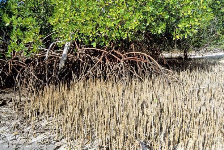 支柱根:许多陆生浅根系植物,从茎上长出许多不定根,向下深入土中,形成能够支持植物体上部的辅助根系。如榕树、玉米、红树。
