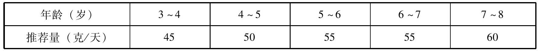 表5-1 学前儿童每日膳食中蛋白质的推荐摄入量