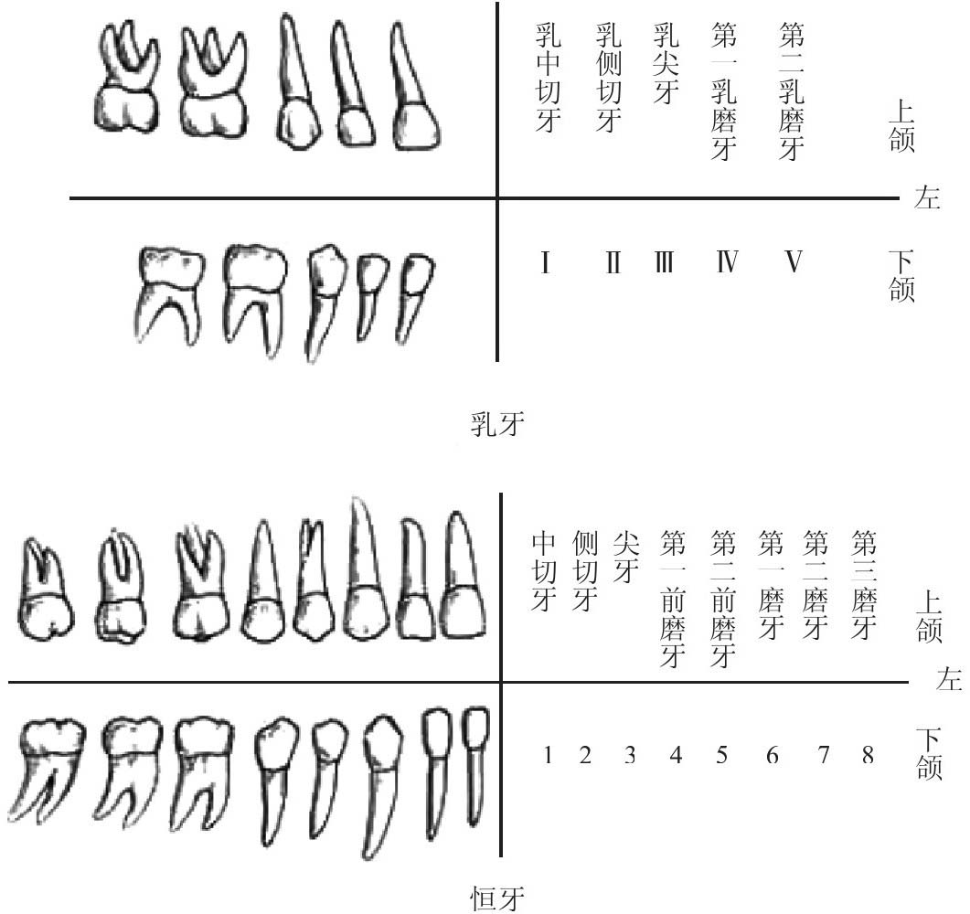 图2-25 乳牙、恒牙的名称及符号