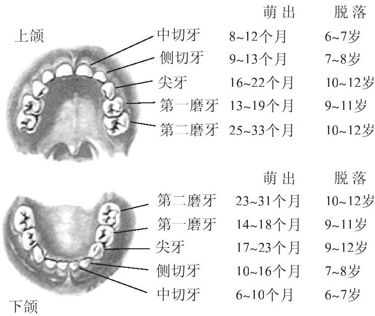 图2-26 乳牙的萌出和脱落