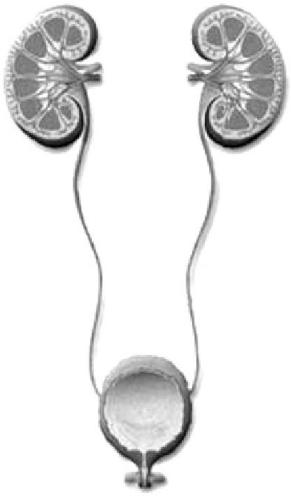 泌尿系统由肾、输尿管、膀胱和尿道组成。泌尿系统的解剖图见图2-28。人体的代谢产物通过血液循环由肾动脉到达肾脏后,经肾脏的生理作用而形成尿液,再经输尿管送入膀胱暂时储存,最后通过尿道排出体外。