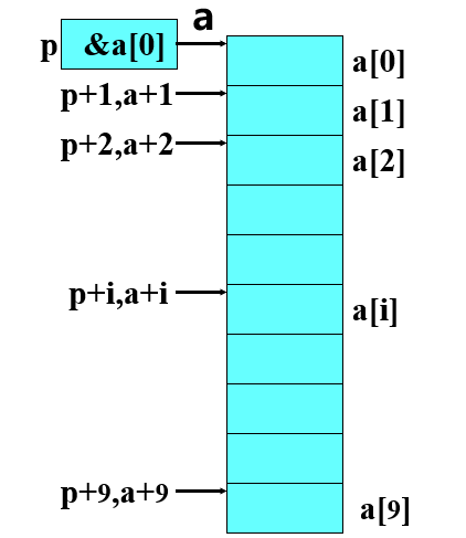 (3) 指向数组元素的指针变量也可带下标, 如 p[i]与*(p+i)等价。所以, a[i],*(a+i),p[i],*(p+i) 四种表示法全部等价。