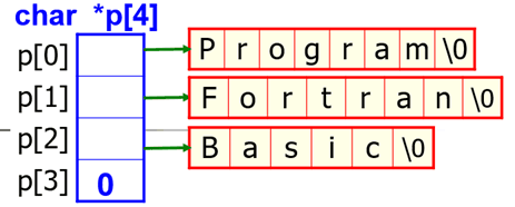 { char *p[]={"Program", "Fortran", "Basic",NULL};