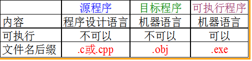 表1 源程序、目标程序、可执行程序三者的区别