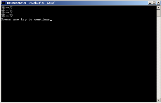 (4)按下F10进行单步调试,此时观察程序的执行情况,并观察屏幕的输出结果是什么?理解单步执行的作用。