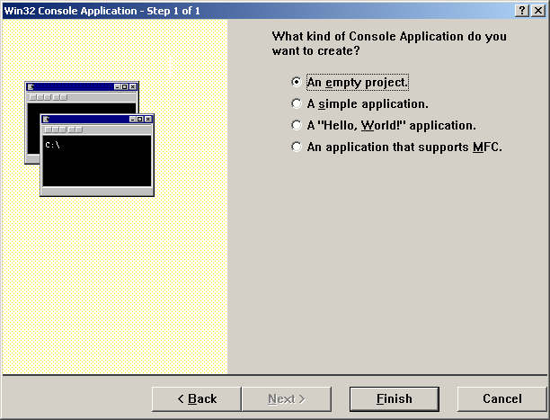 (3)点击“OK”,进入控制台向导窗口,在该窗口中选择“An empty project”;