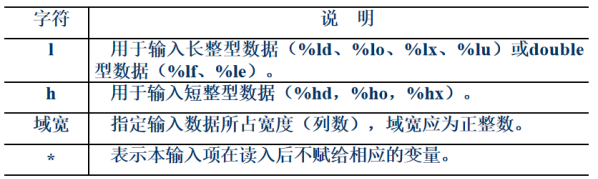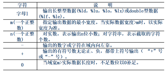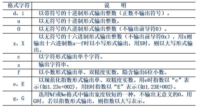 ①格式说明:以“%”字符开始,由%及格式字符共同组成。其作用是说明将“输出表列”中的数据按指定格式进行输出。