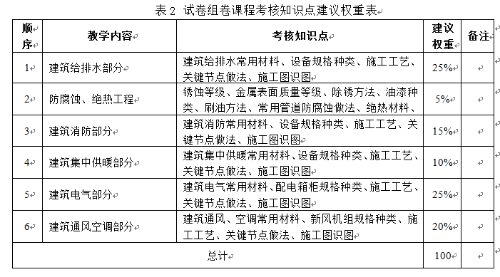 课程成绩评定建议采用网络在线课程进行组织,课程结业考试利用系统题库组卷(100分);过程考核和任务每次都要设置为100分,系统自动取平均分。