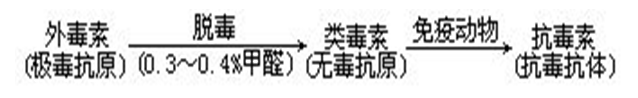 ③类毒素(toxiod):是细菌的外毒素用0.3~0.4%甲醛进行化学脱毒后仍保留着原有抗原性的生物制品,将其注射机体后,具有免疫功能。常用的类毒素有白喉类毒素、破伤风类毒素和肉毒类毒素等。