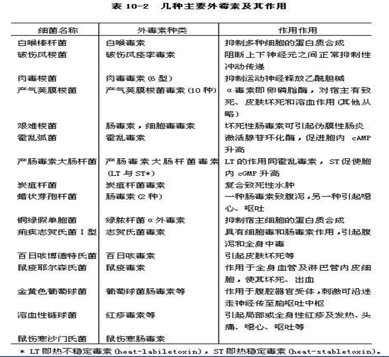 外毒素: G+ 、细胞外、毒性蛋白质;