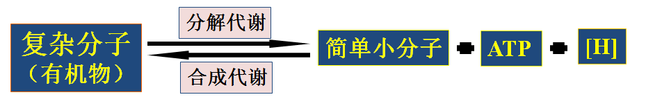 ● 合成代谢:同化作用,是指细胞利用简单的小分子物质合成复杂的大分子,并在此过程中消耗能量的过程。